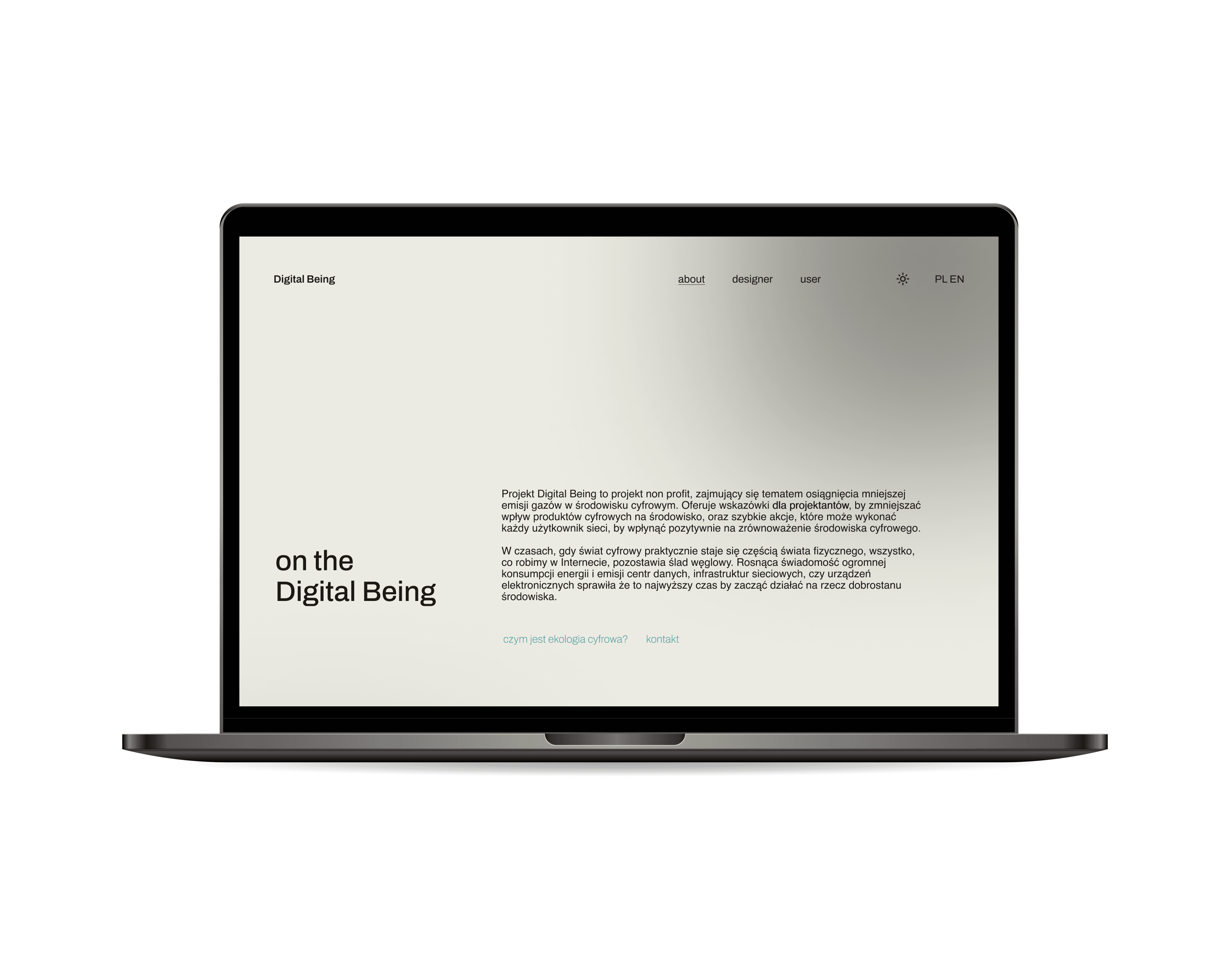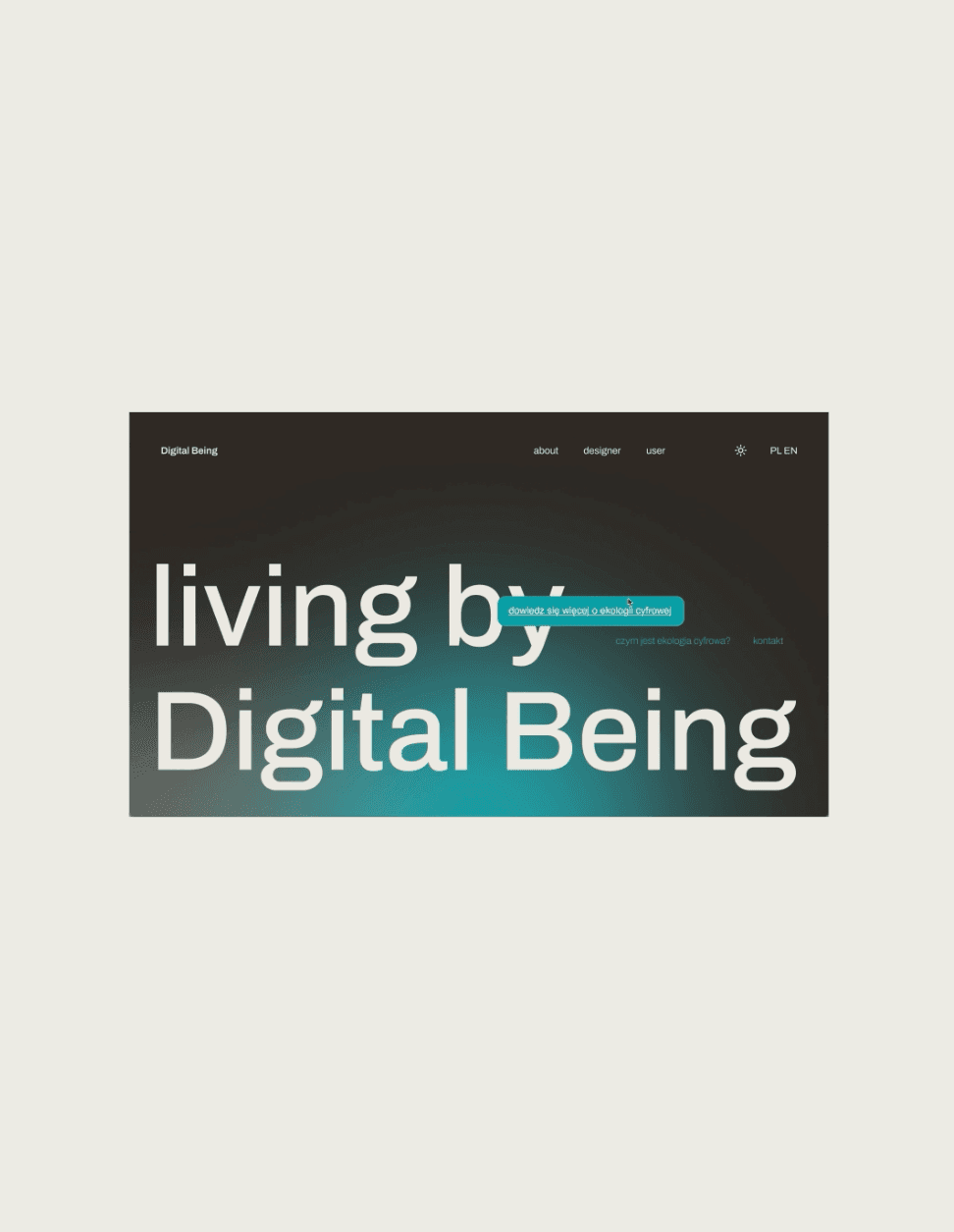 Under 5MB web page on digital ecology using many low energy running features like; dark mode as the main one, background animation easy for low energy implementation and sustainable UI elements.